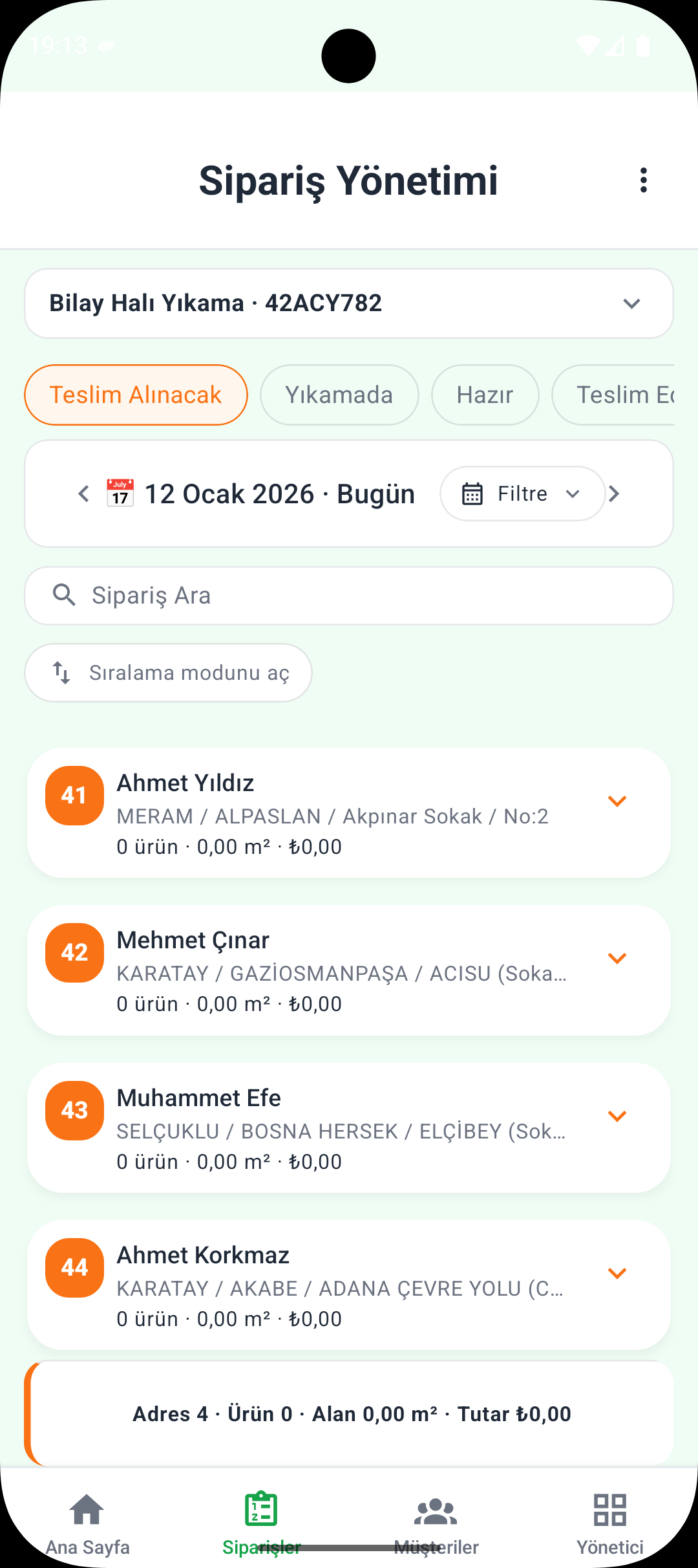 Alım–yıkama–hazır–teslim akışını tek listede yönetin.