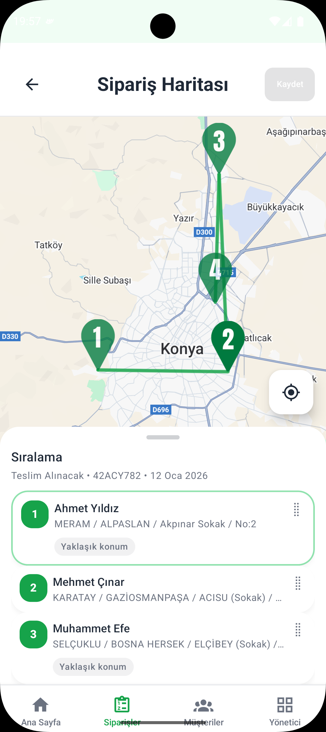 Alım–teslim listelerini sıralayın, sahada akışı hızlandırın.