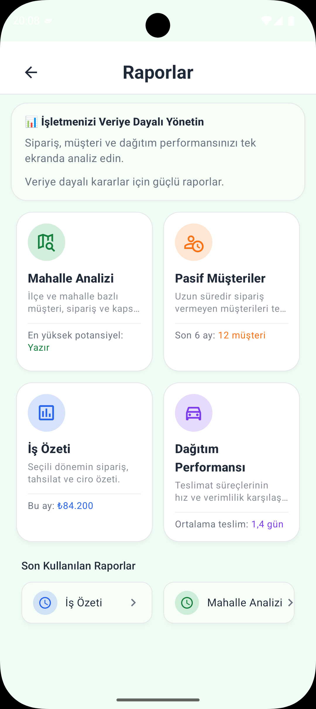 Sadece liste değil; işletmenizi geliştiren analizler.