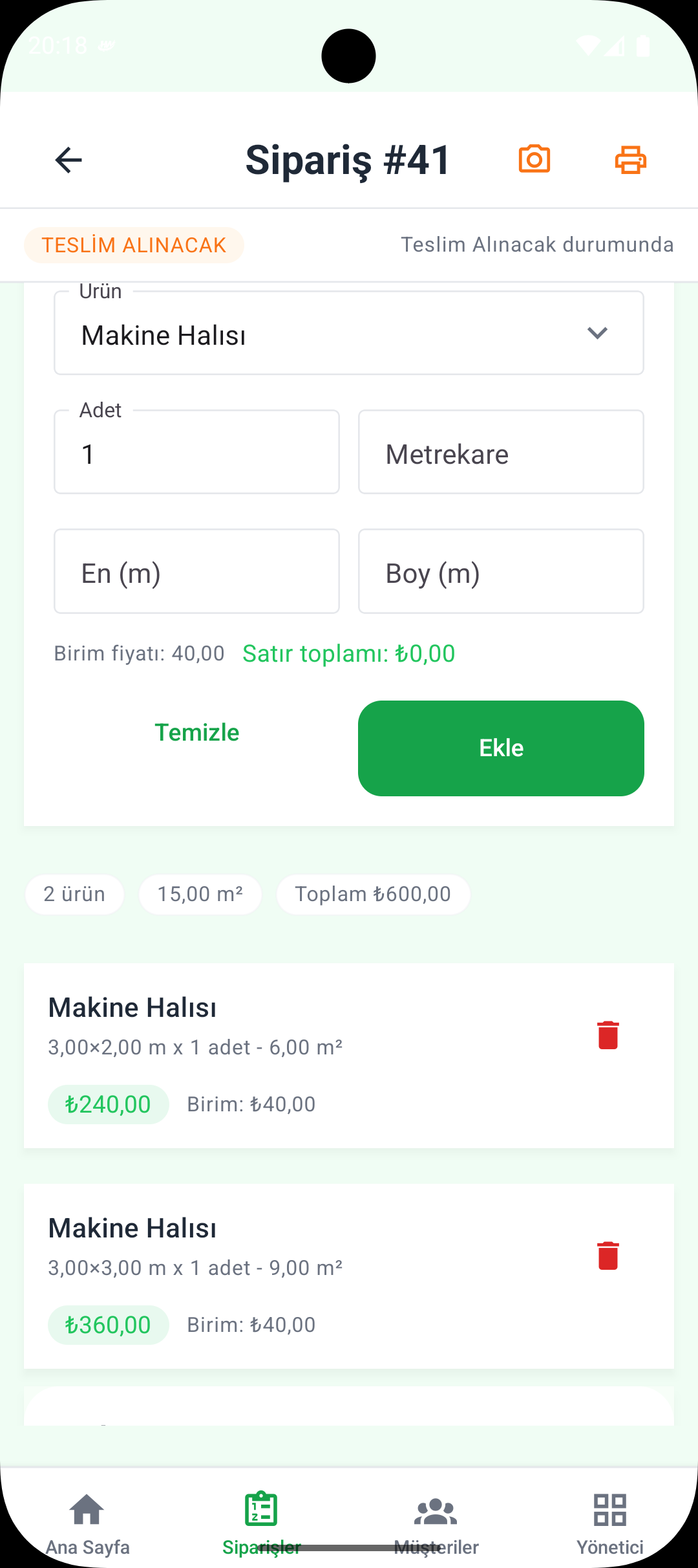 Halı yıkama işletmeleri için özel geliştirilmiş modüler yapı: sahada hız, ofiste kontrol.